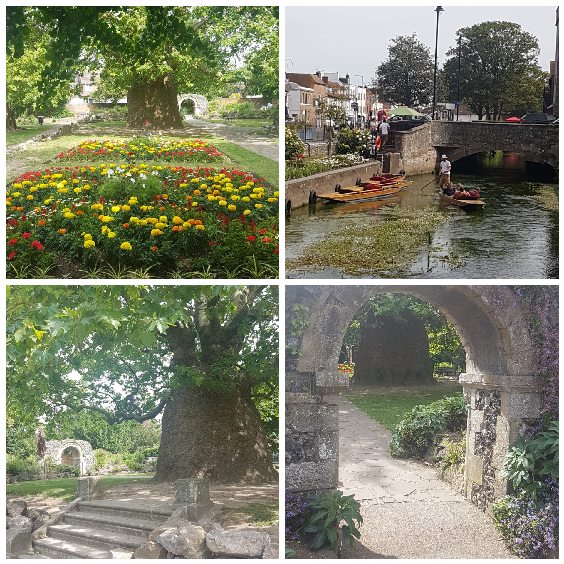 After a nice brunch at the Goods Shed, why not go for a trip on the river Stour. You can go on a boat trip, which is fun and informative, but even better is the Punting experience. You can catch a punt at the West Gate for a leisurely trip on the river. Next to the West Gate is West Gate Gardens; great for a picnic and you must see the Oriental Plane Tree to try to get your arms around it… The Dane John Gardens are beautiful as well for a nice walk around, and are right next to the Norman Castle which unfortunately is now closed to visitors due to no longer being safe.